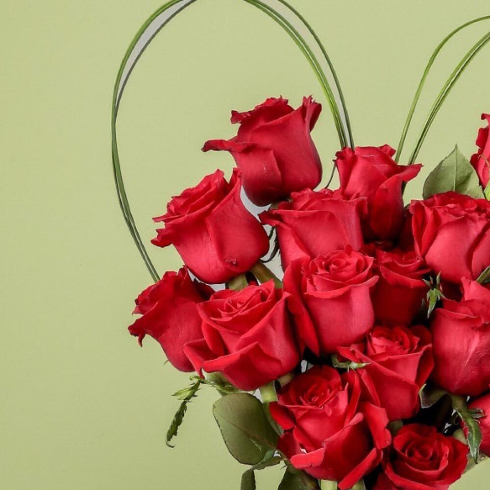 This exquisite floral arrangement features a bundle of 22 hand-selected, vibrant red roses elegantly complemented by 5 pieces of flexi grass. Each bouquet is carefully tied together with a single ribbon, providing a beautifully romantic sentiment. Perfect for special occasions or simply to express your love.