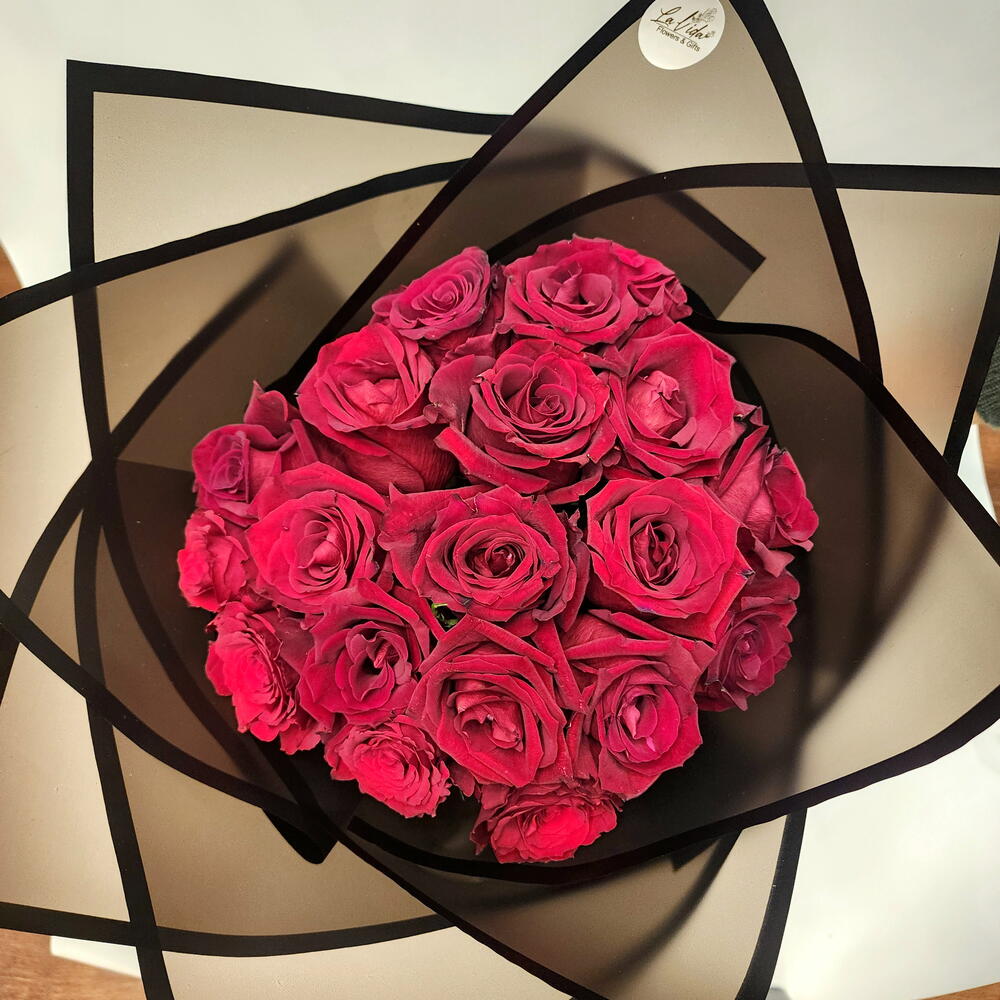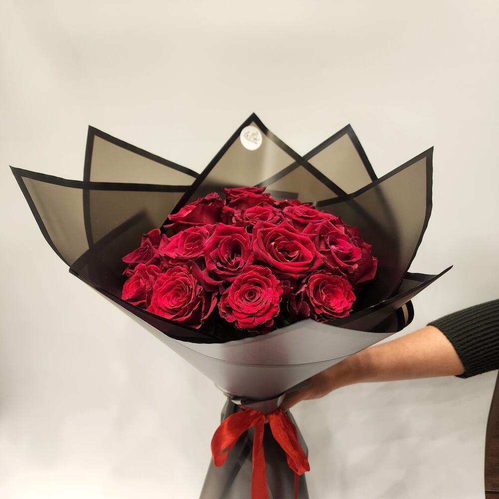 wrapping paper - 3 pcs stems of red roses - 20 pcs
