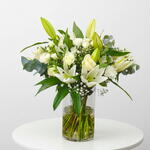 Heavenly Hues | All-White Vase Arrangement with Lilies, Roses Carnations