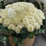 Basket - 1 pcs eucalyptus leaves - 15 pcs white roses - 101 pcs