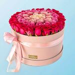Red rose - 30 pcs Pink rose - 20 pcs White rose - 10 pcs pink round leather box - 1 pcs
