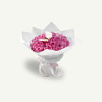 A gracefully hand-tied bouquet of 55 delicate pink roses, adorned with a charming butterfly accent, elegantly wrapped in pristine white for a timeless and heartfelt touch.