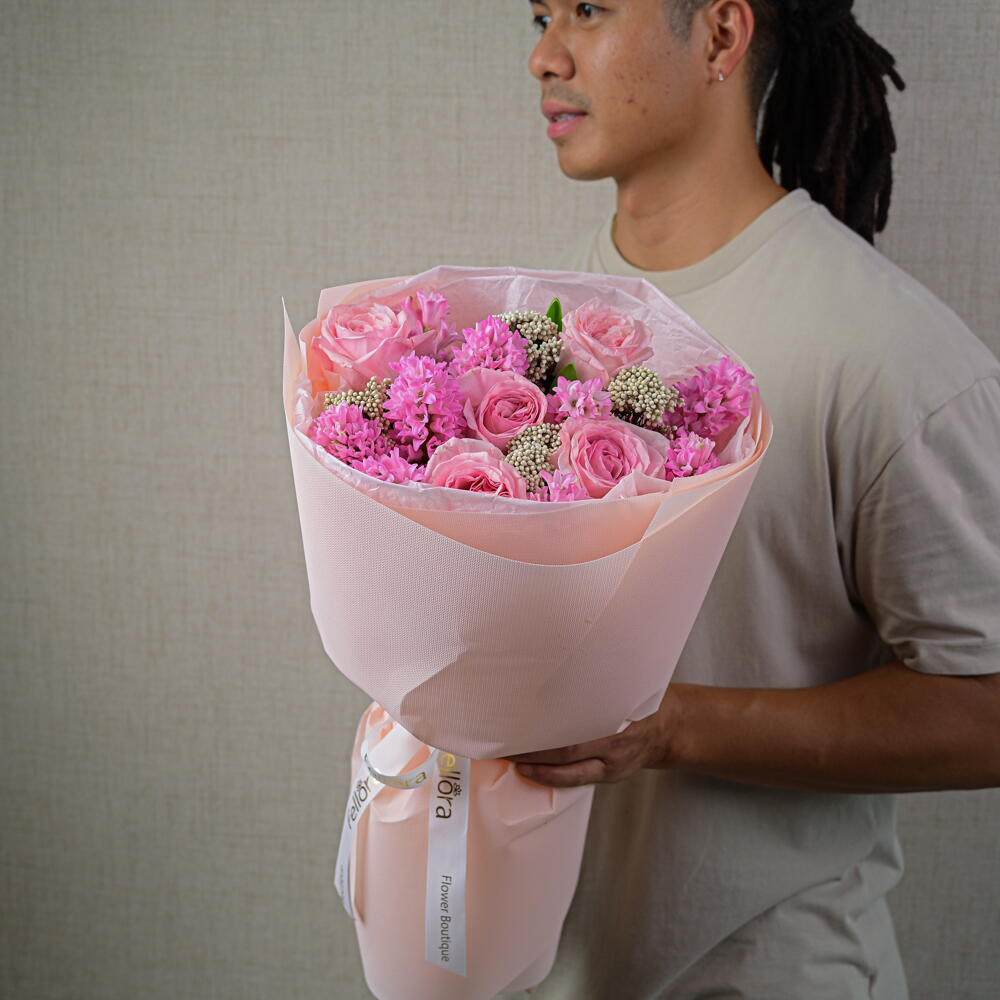 Experience the enchanting beauty of our Hyacinthus Ohara Charm Bouquet, a luxurious arrangement that perfectly blends elegance and charm. This exquisite bouquet features 9 fragrant hyacinthus blooms, 5 stunning Ohara roses, and 2 delicate stems of ozothamnus. Together, they create a captivating display that is sure to impress. Flowers: 9 Hyacinthus blooms, 5 Ohara roses, 2 Ozothamnus stems Perfect for: Special occasions, thoughtful gifts, elegant home decor Delivery: Available across Dubai Freshness Guarantee: Handpicked and artistically arranged Add a touch of sophistication and natural beauty to your space with the Hyacinthus Ohara Charm Bouquet. Whether youre celebrating a milestone, surprising a loved one, or simply enhancing your home decor, this bouquet is designed to delight and inspire. Order now and let the vibrant blooms bring a touch of enchantment to your surroundings!