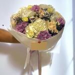 caspia - 2 pcs chrysanthium - 5 pcs hydrangia - 3 pcs roses - 5 pcs in a bqt - 1 pcs spery roses - 5 pcs