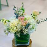 HYDRANGIA 2 WAX 3 LISANTHIUS 3 ROSES 3 & EUCALEY+2 12 * 12 SQUR VASE