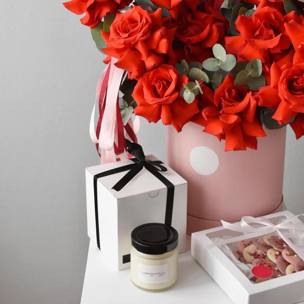 Очень хороший подарочный набор на Валентин. Всё выглядит красиво и свежее. Я поменяла время доставки в последний момент, но всё равно доставили вовремя. Команда очень поддерживающая и помогает. Хороший сервис, я довольна.