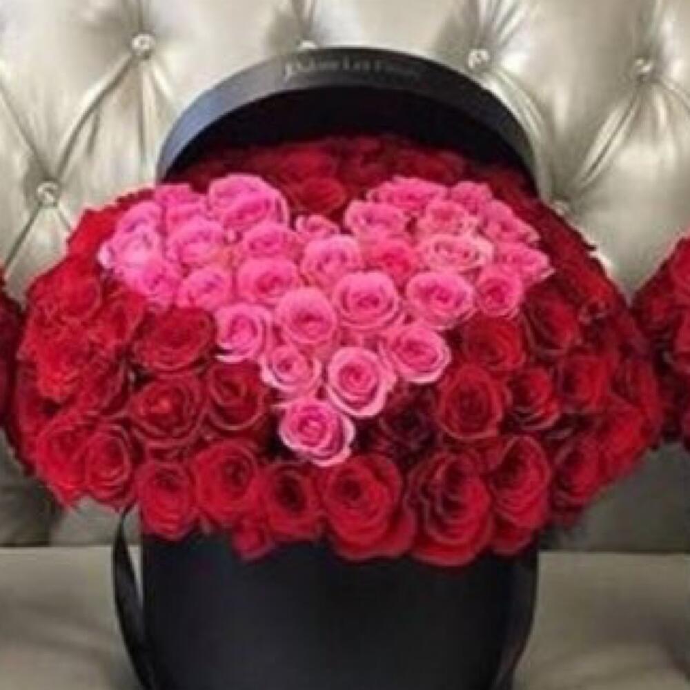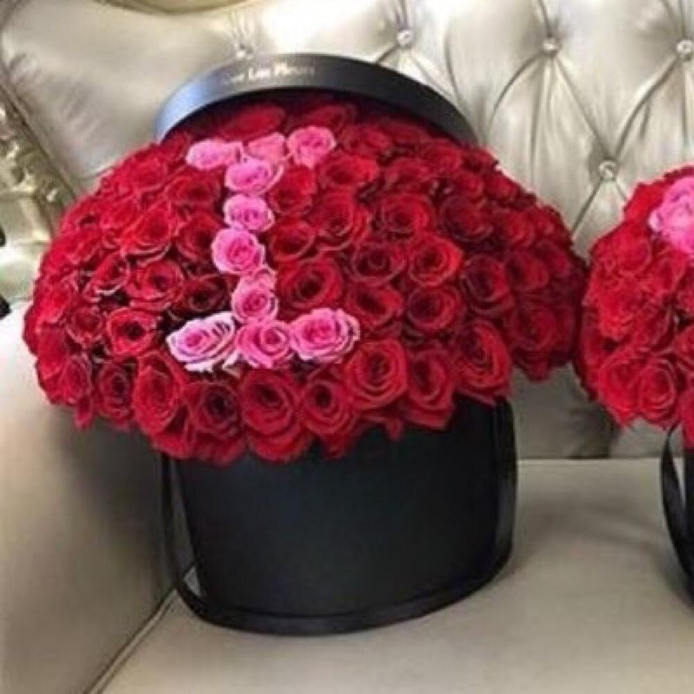 Red rose - 230 pcs Pink rose - 73 pcs flower box black round - 3 pcs