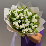 Ribbon - 1 pcs Wrapping - 3 pcs white tulip - 51 pcs