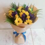 Iris Blue and Yellow gerbera beautifull arrangement