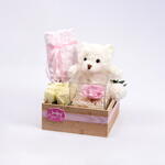 6 white rose Towel Teddy Forver rose pink with box Tray