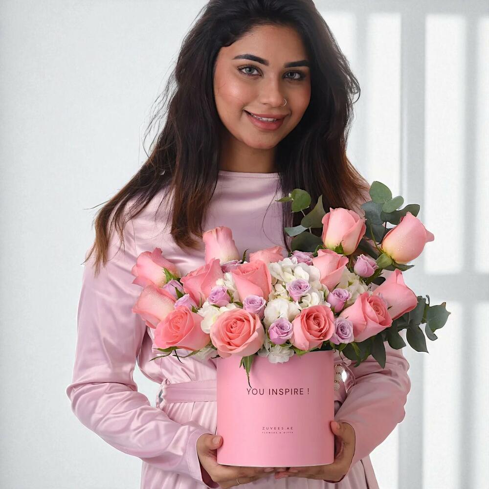 A stunning celebration of softness and sophistication, the Ivory Gala – Inspire Box is designed to captivate through its effortless charm. Featuring a delicate fusion of pink Hermosa roses, lavender sprays, and cloud-like white Hydrangea, this floral ensemble evokes feelings of grace, admiration, and inspiration. Nestled in our signature You Inspire! pink box, its a tribute to the women who uplift and enchant.