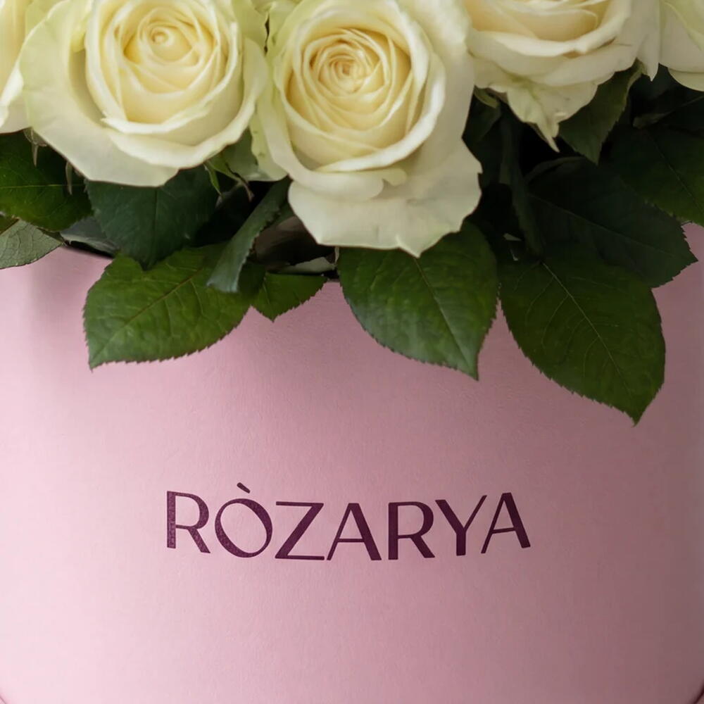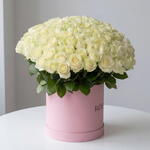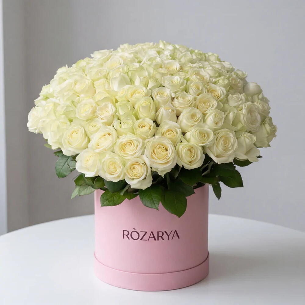 white premium roses - 101 pcs signature large pink "ròzarya" hatbox - 1 pcs