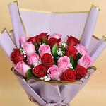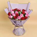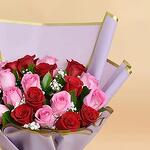 This enchanting Mono Bouquet is a genuine expression of love and adoration, artfully assembled with 11 robust red roses and 10 delicate pink roses. Each flower handpicked to ensure it captures natures beauty at its prime. Every stem sits prettily in an elegant wrapping, tied together with a charming ribbon, creating an alluring floral presentation. Classy and radiant, its the perfect gift to convey heartfelt sentiments, celebrate special moments, or simply to infuse any room with an ocean of colours.