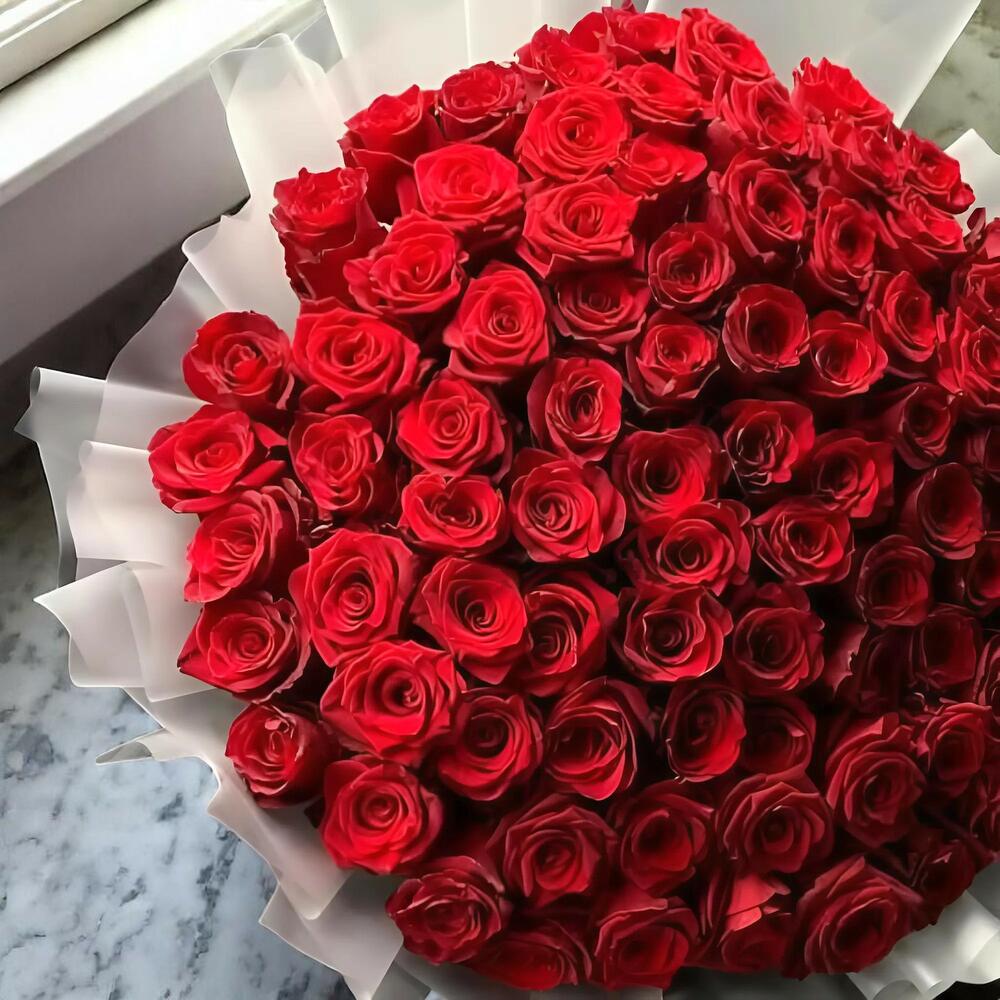 Make a bold romantic gesture with the Eternal Flame bouquet – a breathtaking arrangement of 101 premium red roses wrapped in luxurious white paper and tied with red satin ribbon. This stunning floral display radiates passion and sophistication, making it the perfect gift for a birthday, anniversary, or an unforgettable declaration of love. Care Instructions: Before placing the bouquet in a vase, cut the stems at a 45-degree angle with a sharp knife or pruning shears. Fill the vase with cold water and change it daily. Re-trim the stems each day to maintain freshness. Keep the bouquet away from heat sources, direct sunlight, and drafts. A cool environment will extend the life of the roses and preserve their beauty.