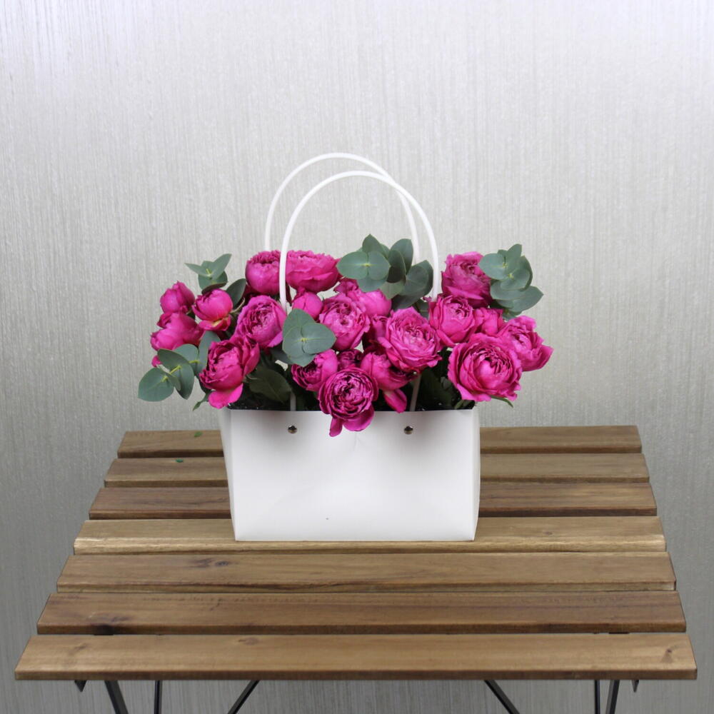 A stunning arrangement of Julietta Cerise roses, beautifully presented in a stylish bag. The vibrant cerise blooms, with their lush petals and rich color, exude elegance and charm. Perfect for any occasion, this arrangement captures the essence of sophistication and grace. Whether as a thoughtful gift or a striking centerpiece, the Julietta Cerise roses bring warmth and beauty, making every moment unforgettable with their timeless allure and exquisite presentation.