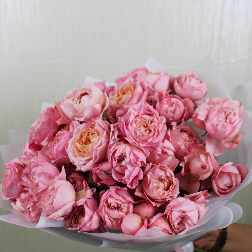 A romantic hand bouquet featuring the delicate beauty of Julietta spray roses, known for their soft petals and timeless charm. The lush blooms exude elegance and sophistication, making them perfect for expressing heartfelt emotions. Whether for a special occasion or a thoughtful gesture, this bouquet radiates natural beauty and grace. Its simplicity and refinement make it a versatile choice, bringing warmth and joy to any moment or setting.