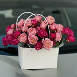 A stunning arrangement featuring Julietta Cerise and Julietta Peach spray roses, beautifully displayed in an elegant box. The vibrant cerise blooms bring bold sophistication, while the soft peach roses add warmth and charm. Together, they create a harmonious blend of color and elegance, perfect for any occasion. This exquisite arrangement radiates beauty and grace, making it a thoughtful gift or a striking centerpiece to elevate any space with timeless allure.