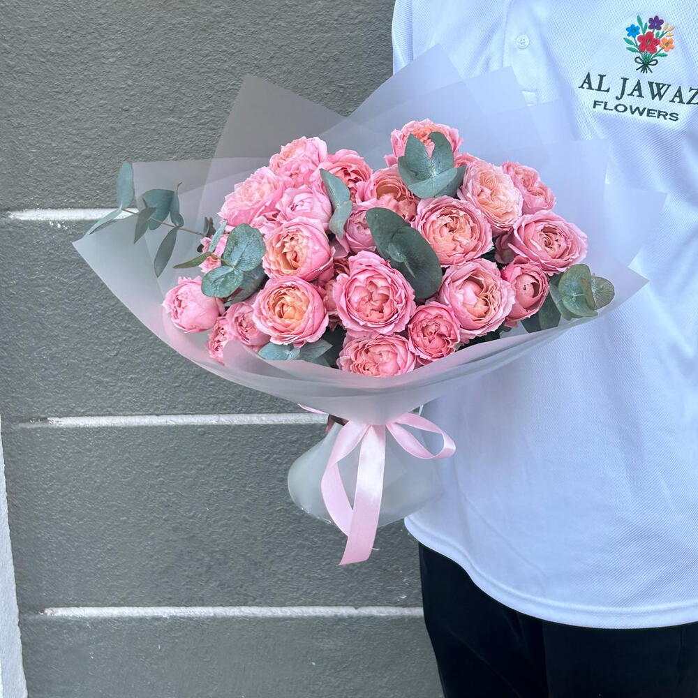 Eucalyptus - 3 pcs wrapping paper - 3 pcs julietta spray rose - 5 pcs