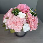 Hydrangea - 1 pcs garden rose - 6 pcs gardenia - 1 pcs mixed greens - 8 pcs roses pink - 7 pcs