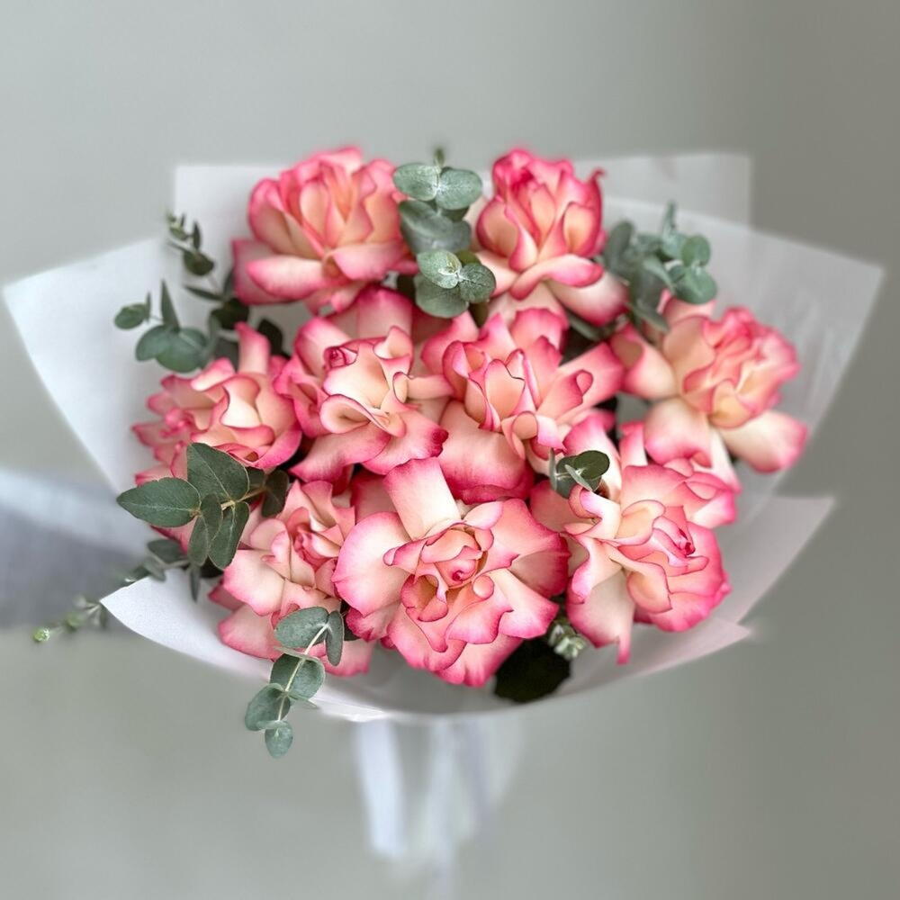 Ribbon - 1 pcs Wrapping - 5 pcs eucalyptus leaves - 4 pcs jumliya pink rose - 11 pcs