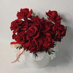 Hatbox - 1 pcs red spray rose - 2 pcs equador red roses - 11 pcs