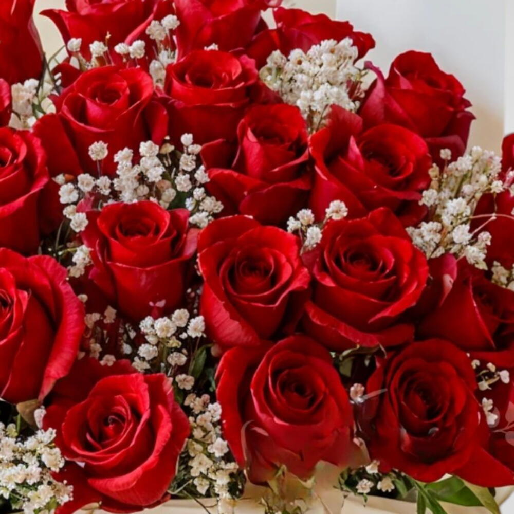 gypsophila white - 10 pcs red roses - 61 pcs