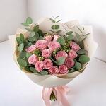 This delicate bouquet of soft pink roses and fresh eucalyptus is a graceful expression of elegance and charm. Ideal for birthdays, thank-you gifts, or simply brightening someone’s day, this arrangement exudes gentle sophistication. The pastel roses radiate warmth and affection, while the eucalyptus adds a modern, refreshing touch. Wrapped in natural-toned paper and tied with a blush pink ribbon, it’s a perfect gesture for any heartfelt moment. Trim stems at a 45-degree angle before placing in water. Keep the bouquet in a cool place away from direct sunlight and heat. Change the water every 2 days and remove any fading petals or leaves for longer freshness.