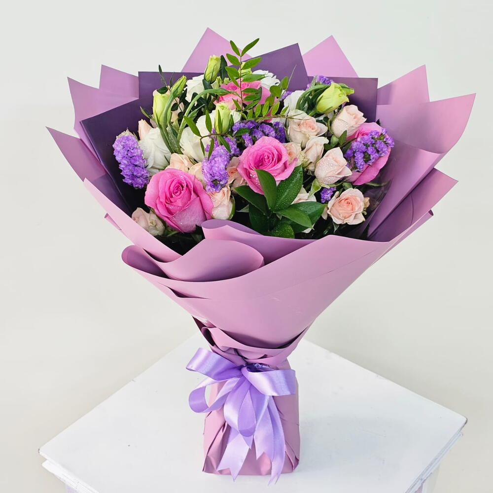 statis - 2 pcs pink roses - 7 pcs spray roses pink - 5 pcs
