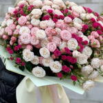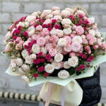 wrapping paper - 4 pcs pink bombastic garden spray rose - 21 pcs white bombastic roses - 20 pcs deep pink spray roses - 10 pcs