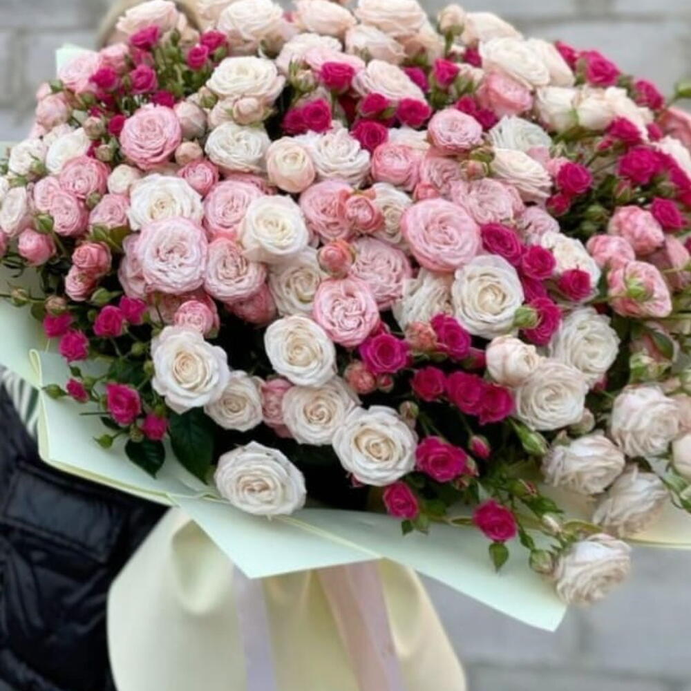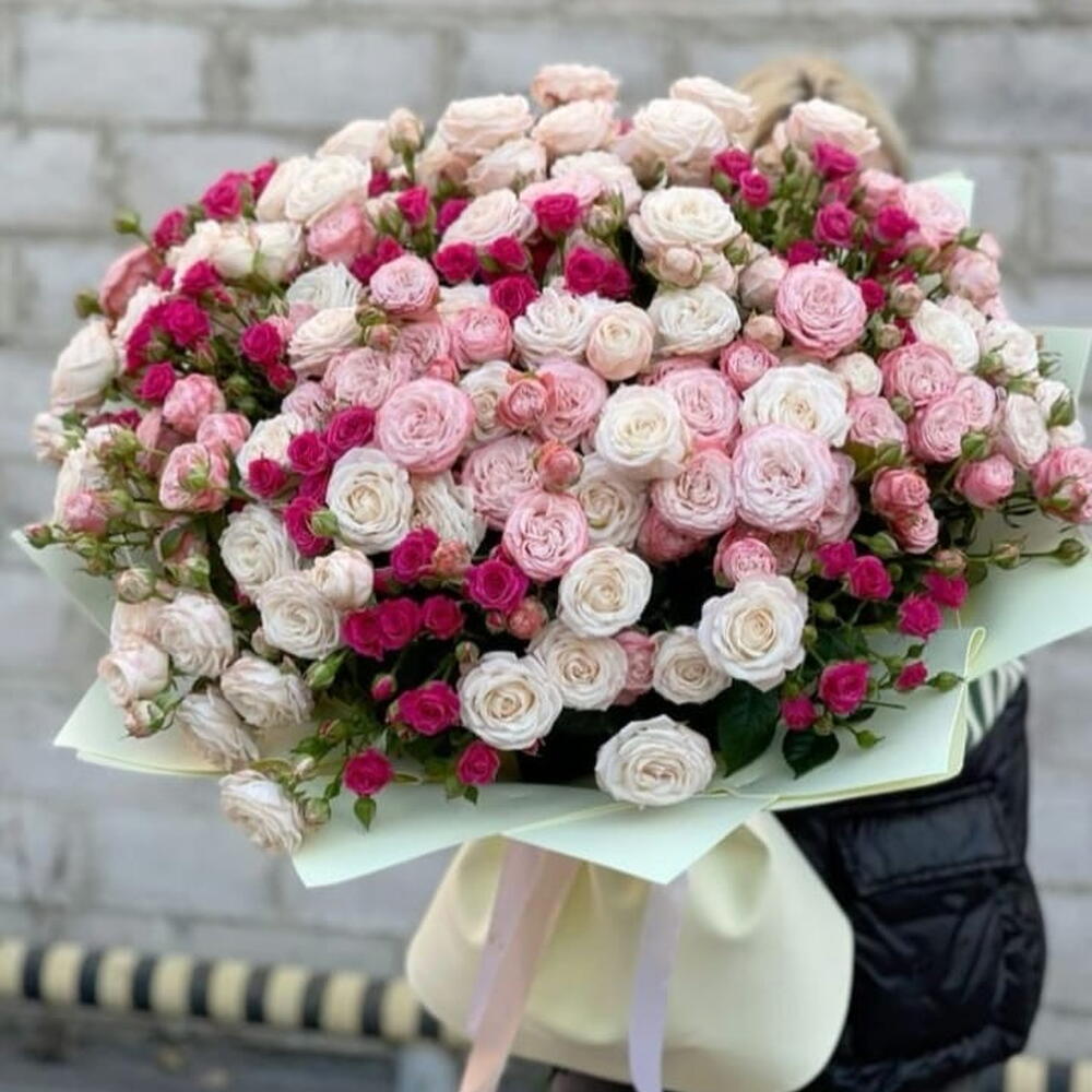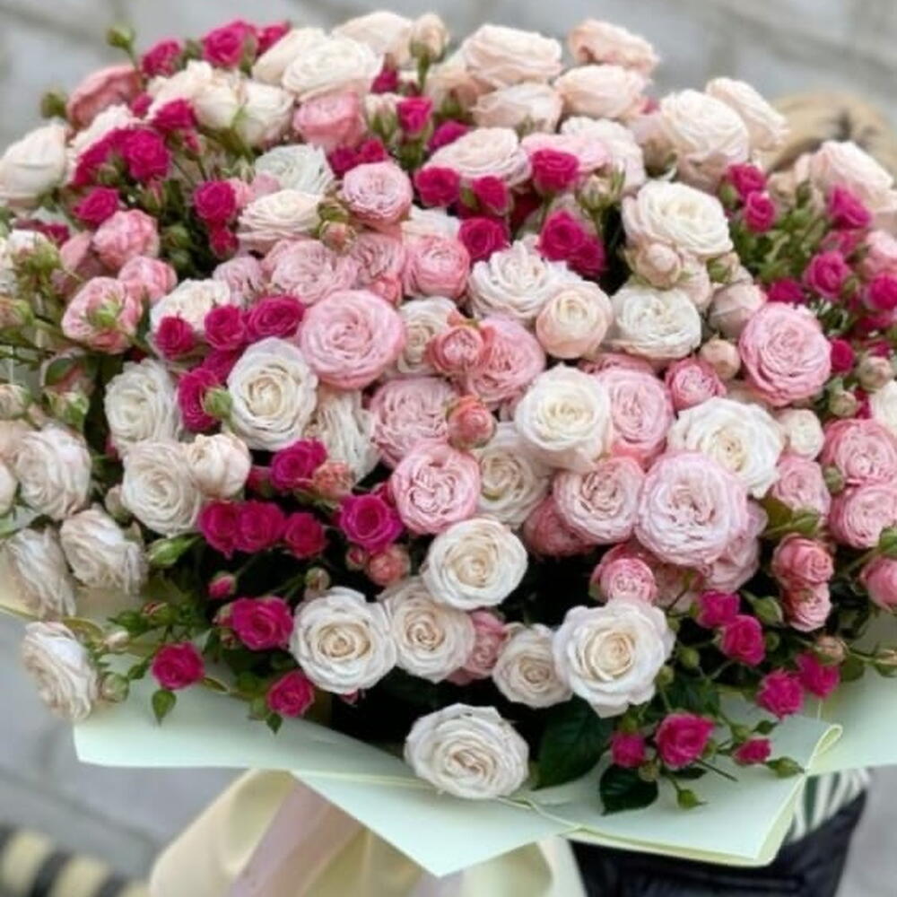 wrapping paper - 4 pcs pink bombastic garden spray rose - 21 pcs white bombastic roses - 20 pcs deep pink spray roses - 10 pcs