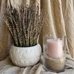 glass cylinder - 1 pcs white ceramic vase - 1 pcs dried lavender - 150 pcs pink scented pillar candle - 1 pcs