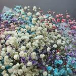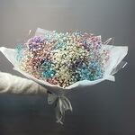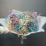 A large, delicate and fluffy bouquet of colourful gypsophila.