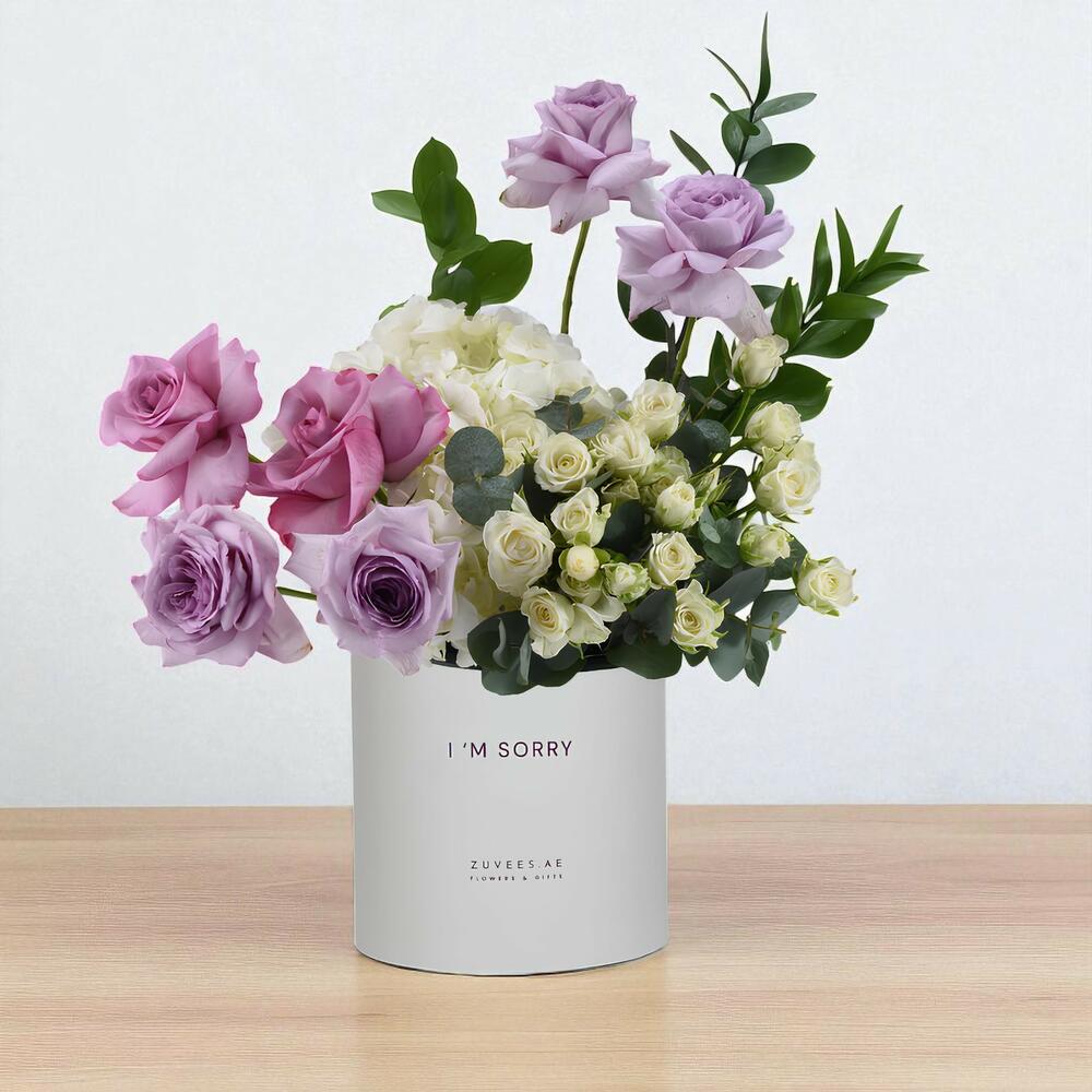 A graceful expression of remorse and sincerity — the Lavender Dreams Sorry Bloom Box offers a soft and sophisticated floral gesture to say “I’m sorry” with heart and elegance.