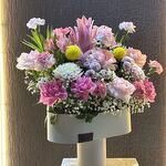 carnation - 8 pcs lily pink - 1 pcs gipso - 5 pcs esperance pink - 5 pcs ping pong yellow - 2 pcs limonium white - 5 pcs pink roses - 4 pcs chysanthemum pink - 2 pcs astomeriya pink - 1 pcs