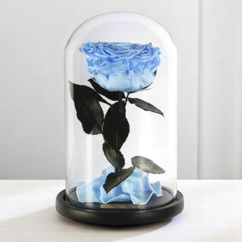 preserved short stem - 1 pcs xxl light blue preserved rose in 26cm glass dome and encased in lovely rose box - 1 pcs