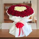 Bouquet of 150 red rose and 50 white rose nice arranged with a white wrapping