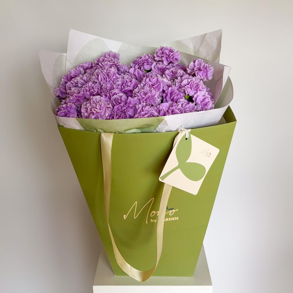 Lilac carnations — elegant and long-lasting, a charming choice to gift when visiting friends.