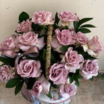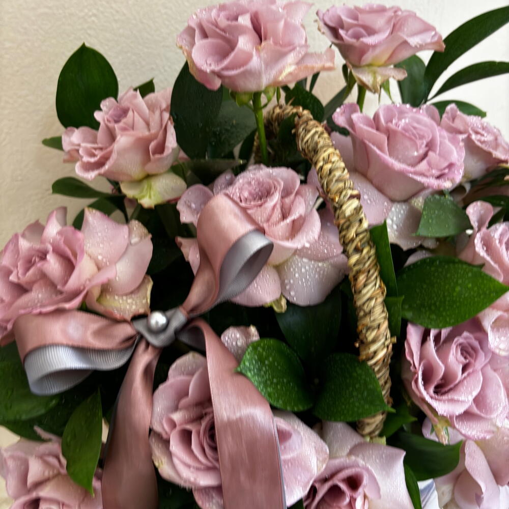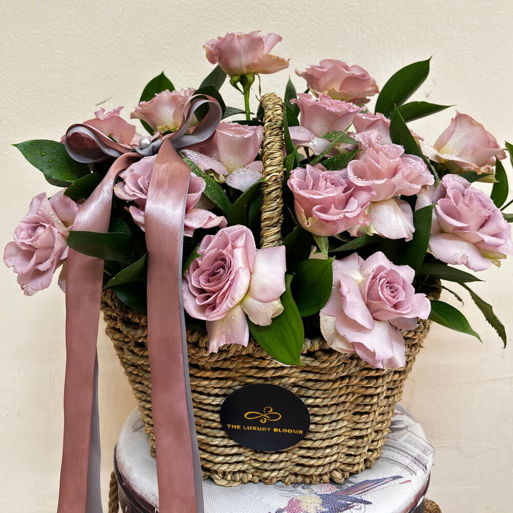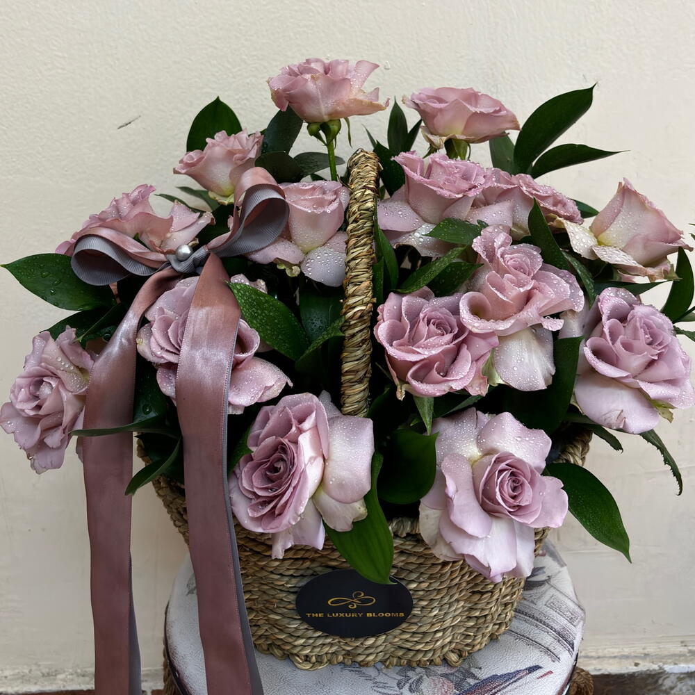 purple rose - 15 pcs eucalyptus leaves - 11 pcs large basket with satin ribbon - 135 pcs