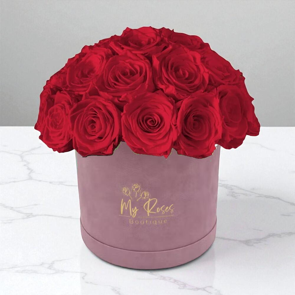 red roses - 36 pcs lilac velvet box - 1 pcs