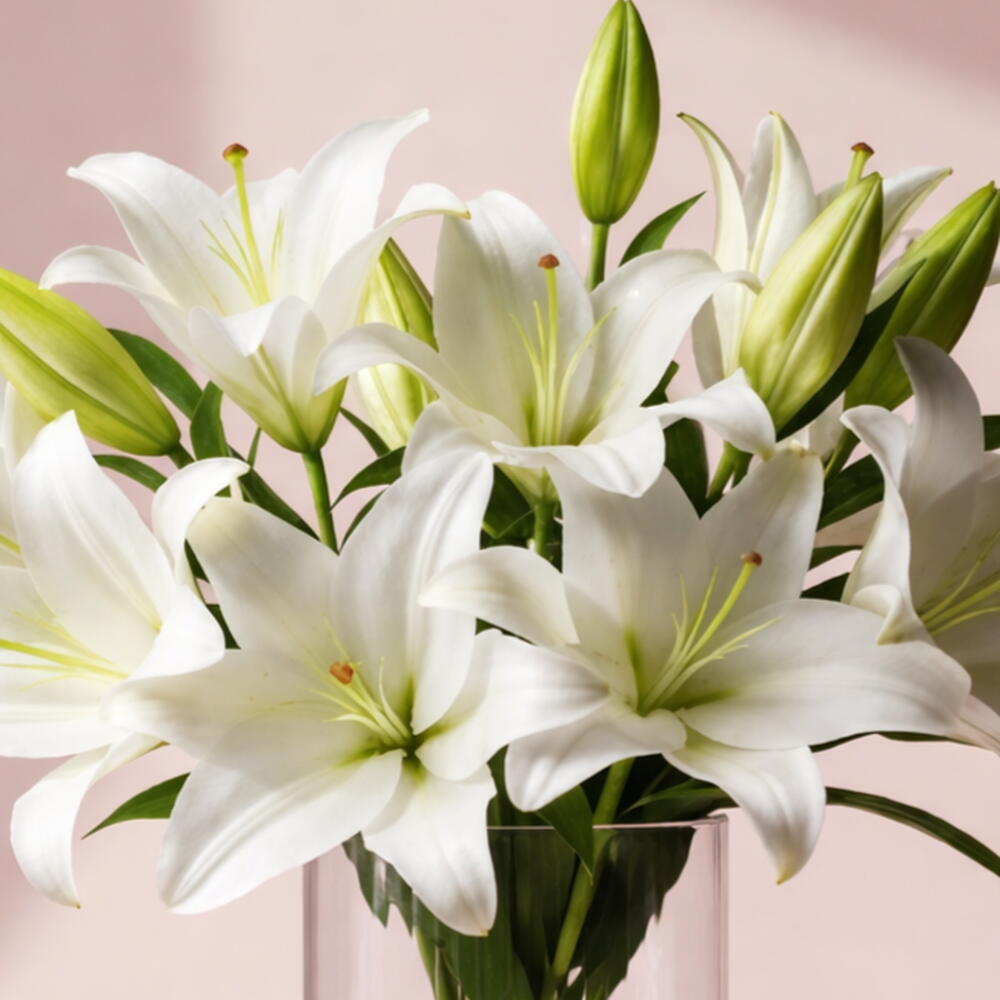 glass vase - 1 pcs lilly white stems - 6 pcs