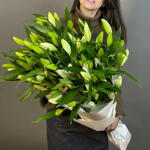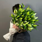 Experience the timeless beauty of our bouquet featuring 29 pristine white lilies. Each bloom exudes purity and grace, elegantly arranged to create a stunning visual symphony. Perfect for conveying heartfelt emotions or adding a touch of sophistication to any space. This bouquet will surprise you with its bright fragrance and impeccable appearance.