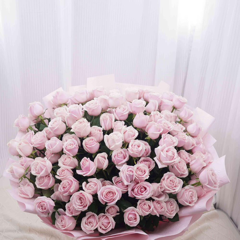 Breathe an air of elegance into any environment with this charming basket filled with 101 light pink rose bubbles. A sublime composition boasting ingenuity and style, this floral arrangement etches a lasting impression with its soft and delicate hues. Perfect for creating harmony in your living space or gifting to a cherished one, these light pink roses are a testimony to beauty and delicacy. Optimizing the art of flower gifting, these rose bubbles wrapped in a beautiful basket, add a touch of natures grace and serenity.