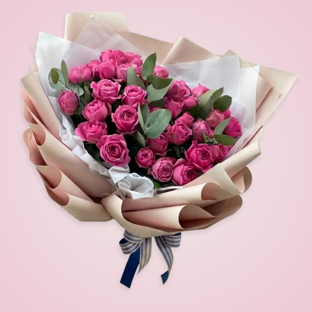 30 marina fuschia pink rose, 5 stem eucalyptus