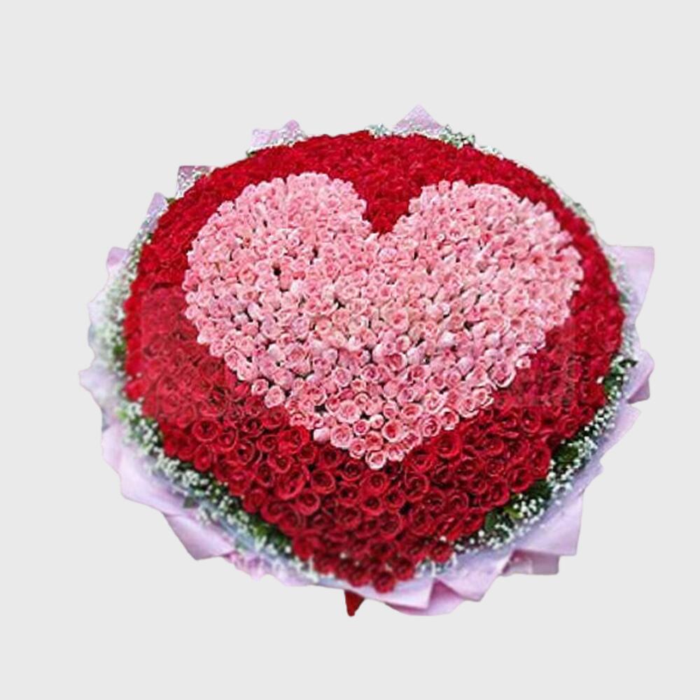 Product Details: Beautifull arrangement of 1001 Roses Heart Design with Red and Pink Roses Designed on a Wooden Base