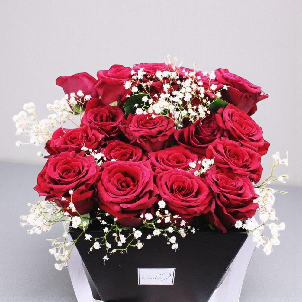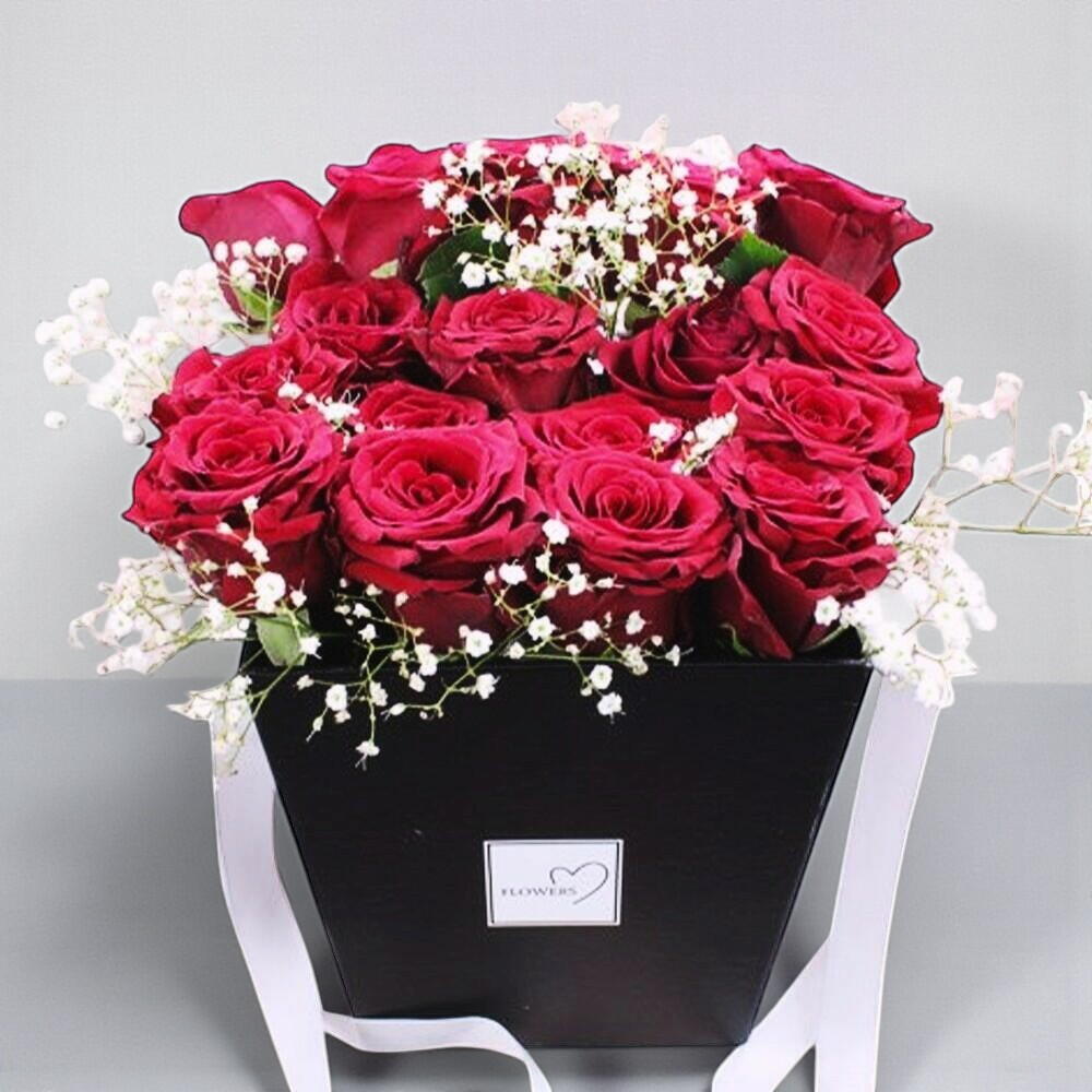 A timeless and luxurious arrangement of deep red roses, beautifully placed in a stylish black gift box. Symbolizing love, passion, and devotion, this bouquet is perfect for expressing heartfelt emotions on anniversaries, birthdays, or romantic surprises. The delicate touches of baby’s breath add charm and elegance, making this a truly stunning floral gift. Keep the arrangement in a cool, dry place, away from direct sunlight and heat. Lightly mist the flowers with water daily to maintain their freshness. If the arrangement contains floral foam, add a small amount of water every two days to keep the roses hydrated. Avoid placing near air conditioners or heaters to prevent drying.