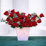 21 Red Roses 5 Eucalyptus Leaves Designer popcorn Box