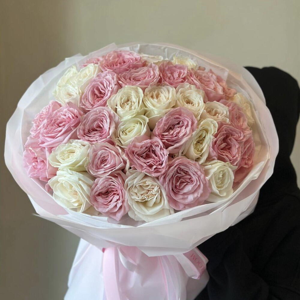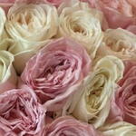 bouquet is a stunning floral arrangement that exudes romance and elegance. The combination of delicate creamy and soft pink roses creates a luxurious and eye-catching effect.