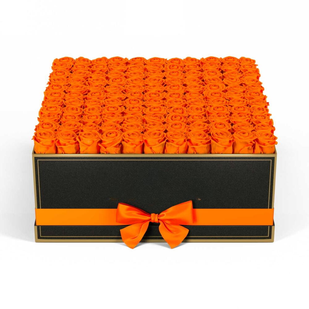 Love Cube — 101 Orange Roses Bright, bold, and full of energy, the Love Cube overflows with 101 vibrant orange roses in a perfectly structured square box. Each rose radiates warmth, enthusiasm, and playful passion — a gift that feels luxurious, joyful, and unforgettable. Perfect for celebrations, birthdays, anniversaries, or moments when you want to brighten someone’s day and make a statement. The cube’s structured design adds a modern elegance, while the striking orange blooms demand attention. Delivered fast across Abu Dhabi, beautifully arranged, and ready to leave a lasting impression. 101 roses. One cube. Endless energy.