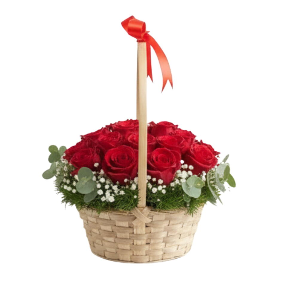 Love in a Basket – 15 Red Roses Basket
