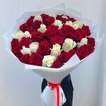 Red rose - 40 pcs White rose - 10 pcs Red ribbon - 2 pcs white wrapping - 8 pcs